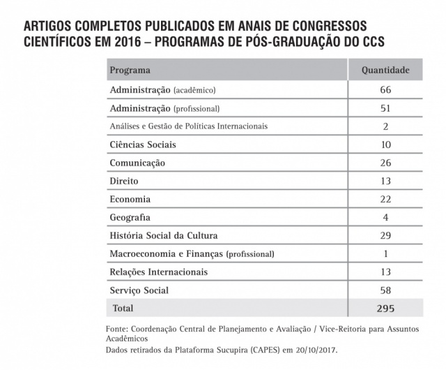 Artigos publicados em anais de congressos científicos pelos Programas de Pós-Graduação do CCS