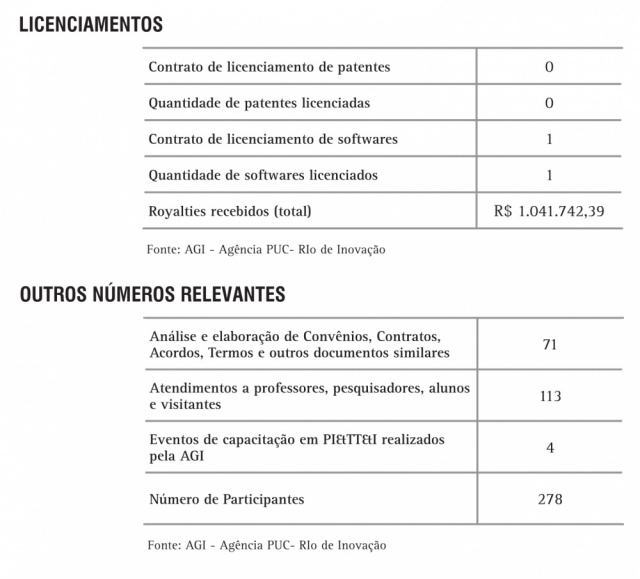 Licenciamentos e outros números relevantes relativos a Propriedade Intelectual