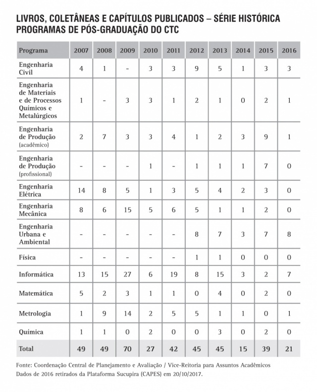 Livros, Coletâneas e Capítulos publicados - Programas de Pós-Graduação do CTC - série histórica