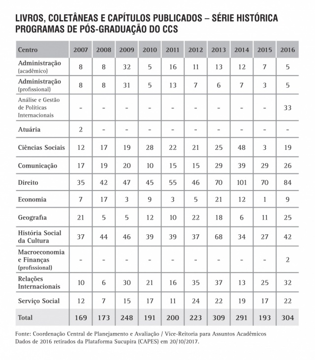 Livros, Coletâneas e Capítulos publicados - Programas de Pós-Graduação do CCS - série histórica