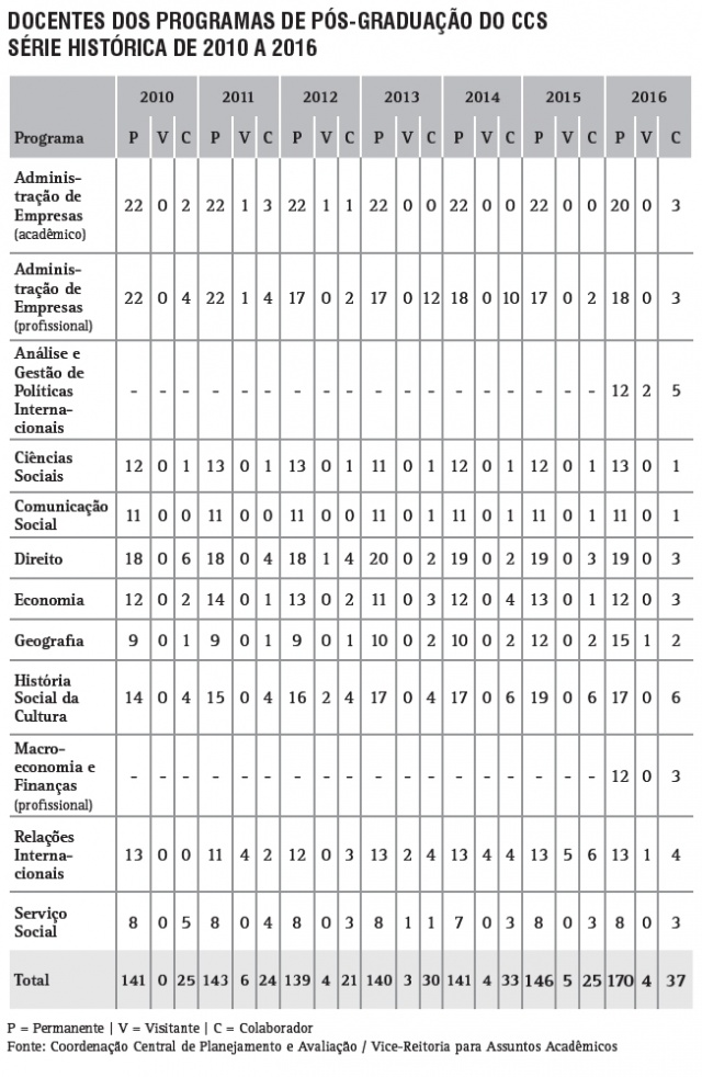 Docentes dos Programas de Pós-Graduação do CCS - Série Histórica