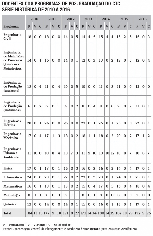 Docentes dos Programas de Pós-Graduação do CTC - Série Histórica