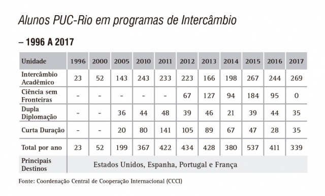 Alunos da PUC-Rio em programas de intercâmbio - série histórica