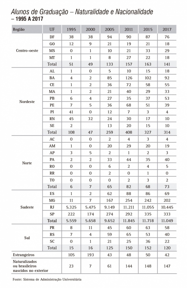 Alunos de Graduação naturais de outros estados da federação e estrangeiros