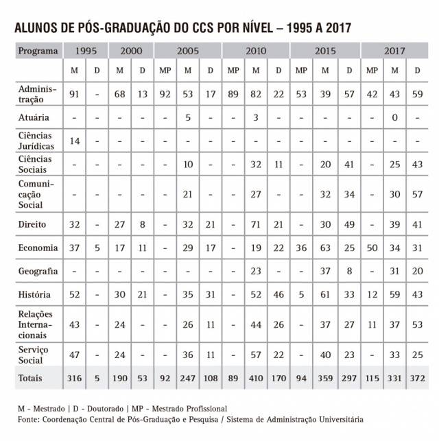 Alunos de Pós-Graduação do CCS por nível - série histórica