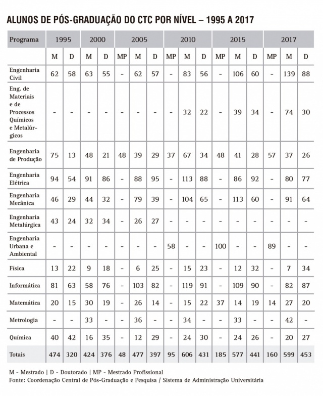 Alunos de Pós-Graduação do CTC por nível - série histórica