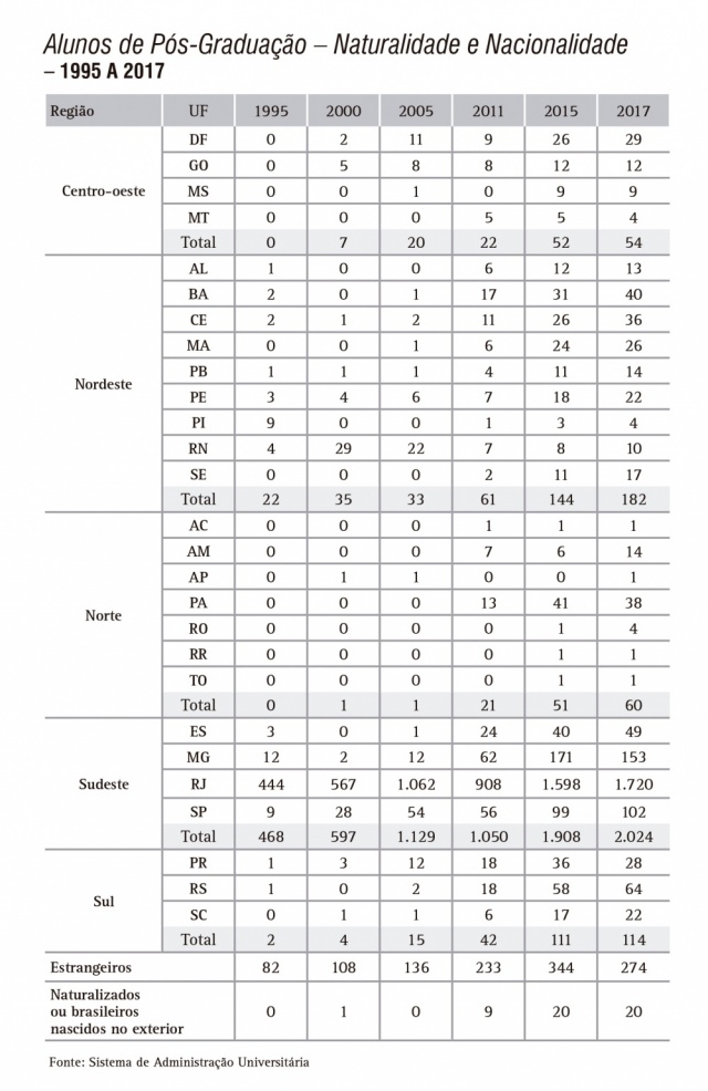 Alunos de Pós-Graduação - Naturalidade e Nacionalidade - série histórica