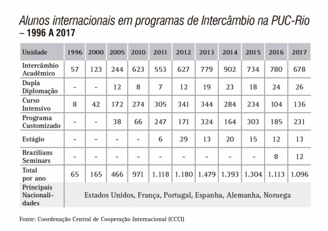 Alunos internacionais em programas de intercâmbio na PUC-Rio - série histórica