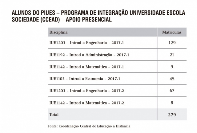 Alunos do PIUES - Programa de Integração Universidade Escola Sociedade - Educação a Distância (CCEAD)
