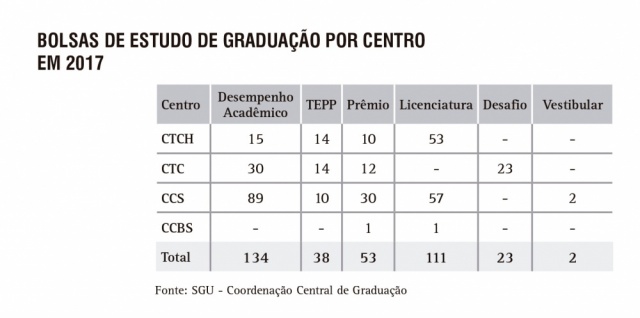 Bolsas de estudo de Graduação, por Centro