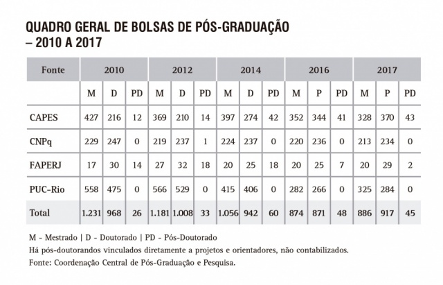 Quadro geral de Bolsas de Pós-Graduação - série histórica