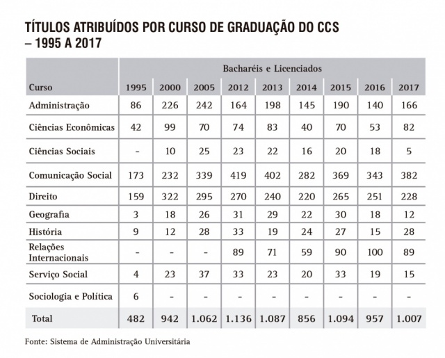 Títulos atribuídos por curso de Graduação do CCS - série histórica