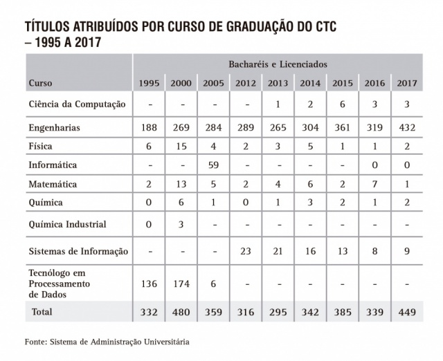 Títulos atribuídos por curso de Graduação do CTC - série histórica