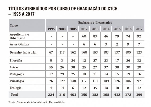 Títulos atribuídos por curso de Graduação do CTCH - série histórica