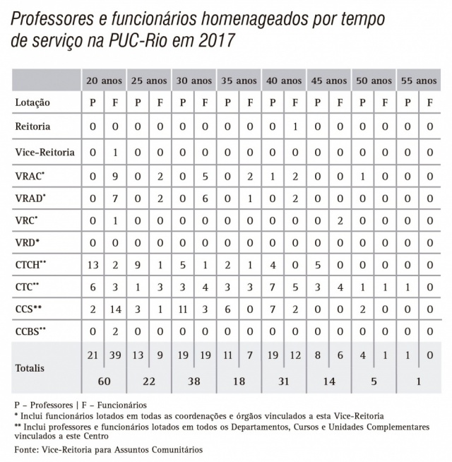 Professores e Funcionários homenageados por tempo de serviço na PUC-Rio