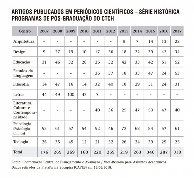 Artigos publicados em periódicos científicos - Programas de Pós-Graduação do CTCH - série histórica