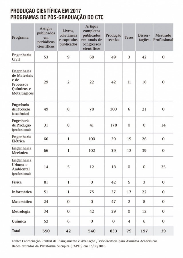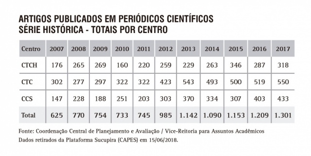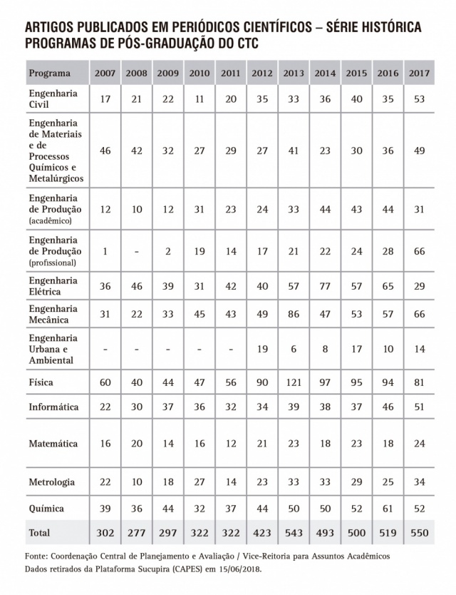 Artigos publicados em periódicos científicos - Programas de Pós-Graduação do CTC - série histórica