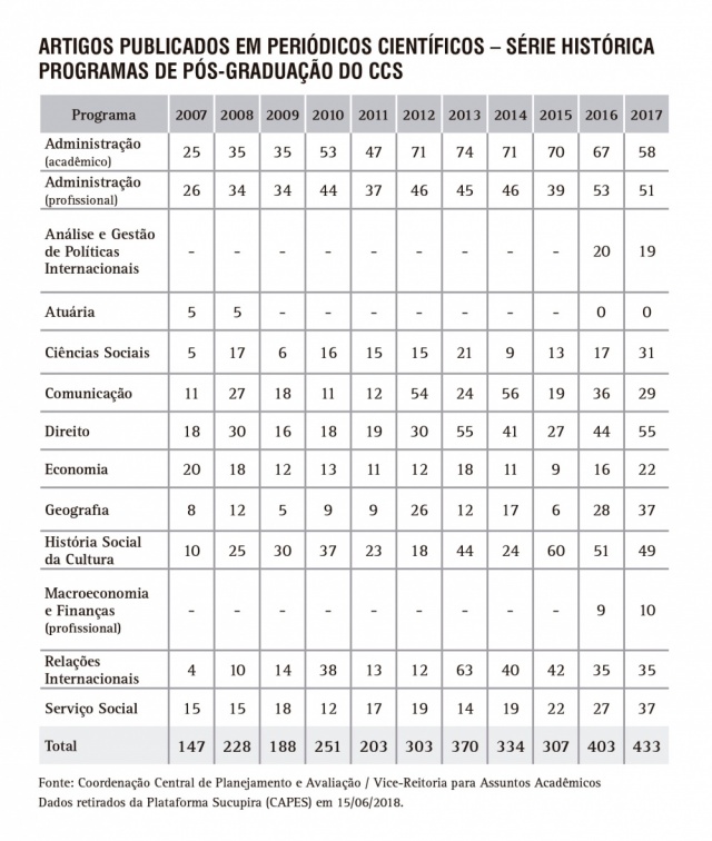 Artigos publicados em periódicos científicos - Programas de Pós-Graduação do CCS - série histórica