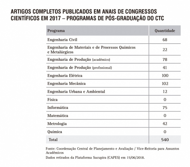 Artigos publicados em anais de congressos científicos pelos Programas de Pós-Graduação do CTC