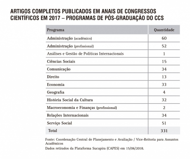 Artigos publicados em anais de congressos científicos pelos Programas de Pós-Graduação do CCS