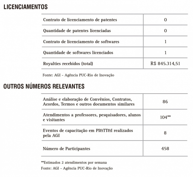 Licenciamentos e outros números relevantes relativos a Propriedade Intelectual
