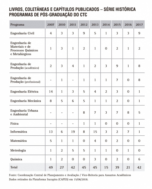 Livros, Coletâneas e Capítulos publicados - Programas de Pós-Graduação do CTC - série histórica