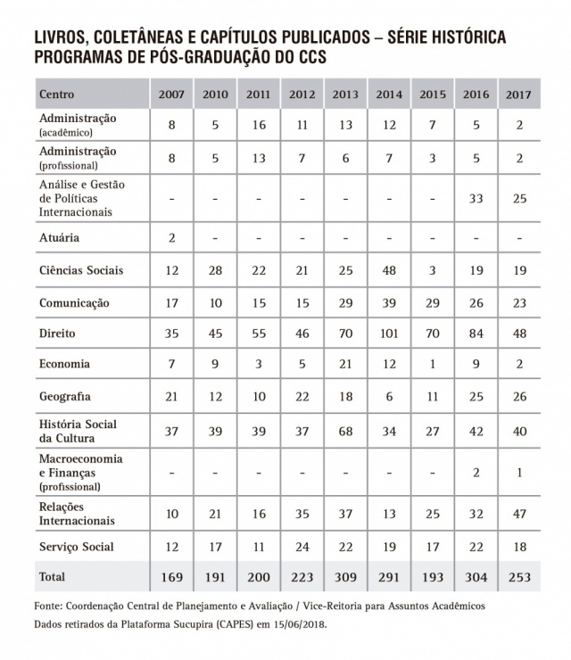 Livros, Coletâneas e Capítulos publicados - Programas de Pós-Graduação do CCS - série histórica