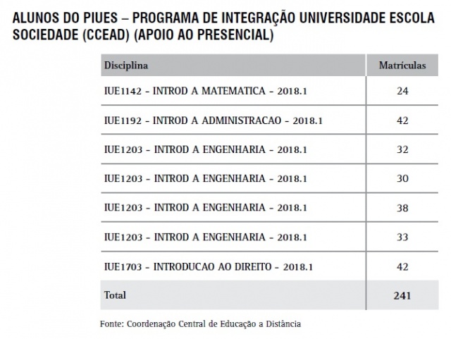 Alunos do PIUES - Programa de Integração Universidade Escola Sociedade - Educação a Distância (CCEAD)