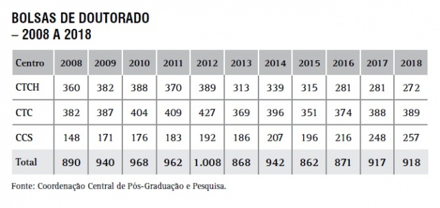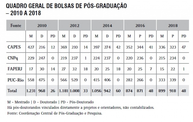 Quadro geral de Bolsas de Pós-Graduação - série histórica