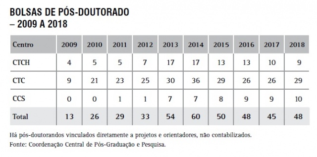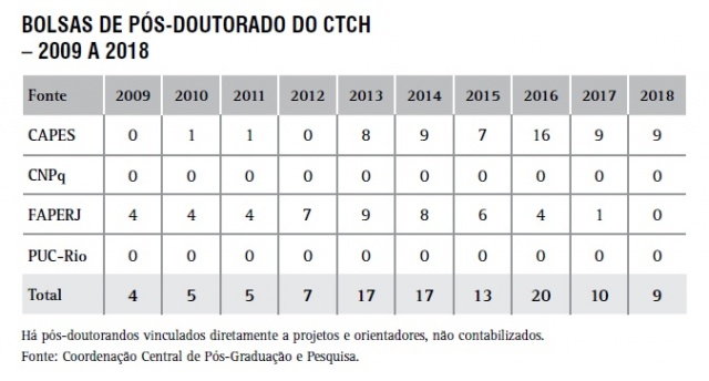 Bolsas de Pós-Doutorado do CTCH - série histórica