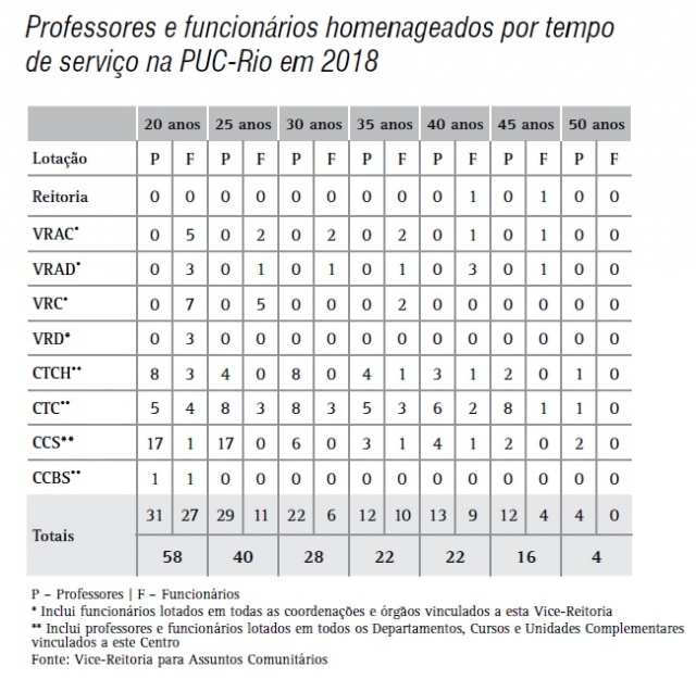 Professores e Funcionários homenageados por tempo de serviço na PUC-Rio