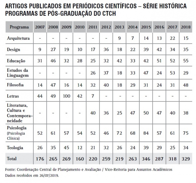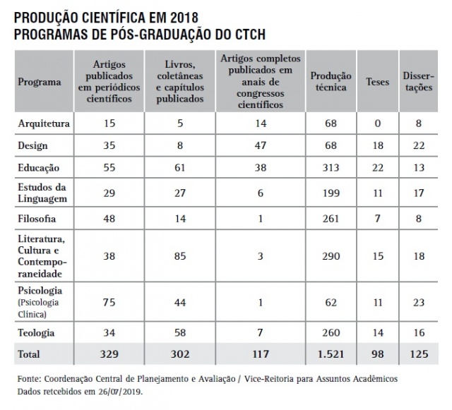 Produção Científica - Programas de Pós-graduação do CTCH
