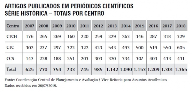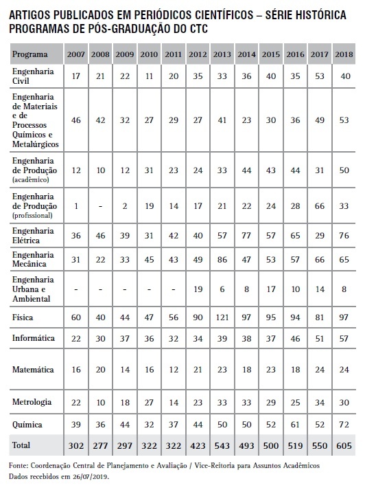 Artigos publicados em periódicos científicos - Programas de Pós-Graduação do CTC - série histórica
