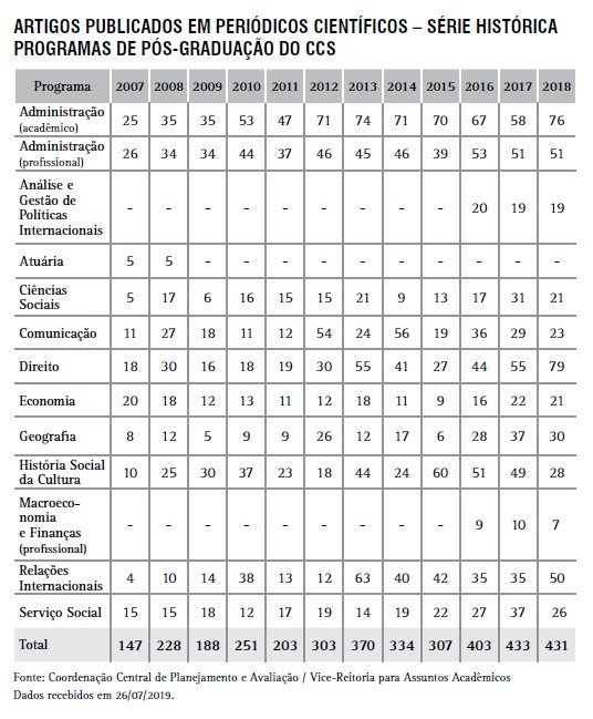 Artigos publicados em periódicos científicos - Programas de Pós-Graduação do CCS - série histórica