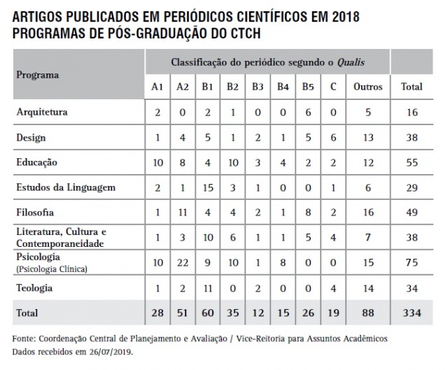 Artigos publicados em periódicos científicos - Programas de Pós-Graduação do CTCH - Classif. Qualis