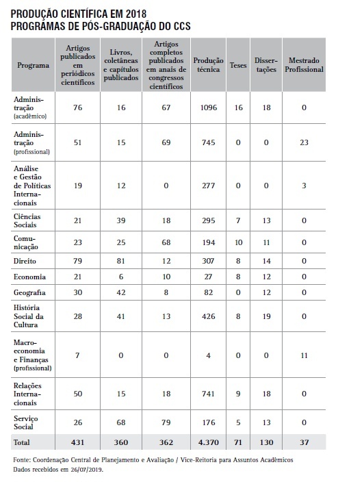 Produção Científica - Programas de Pós-graduação do CCS