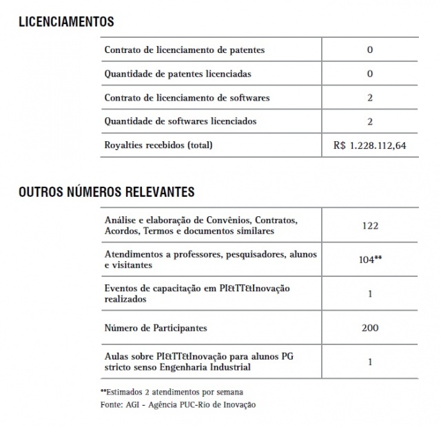 Licenciamentos e outros números relevantes relativos a Propriedade Intelectual