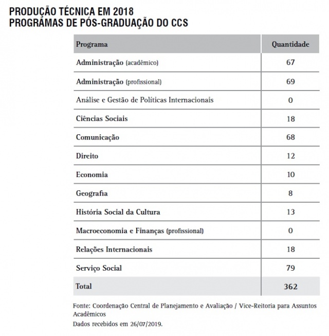 Produção Técnica - Programas de Pós-Graduação do CCS