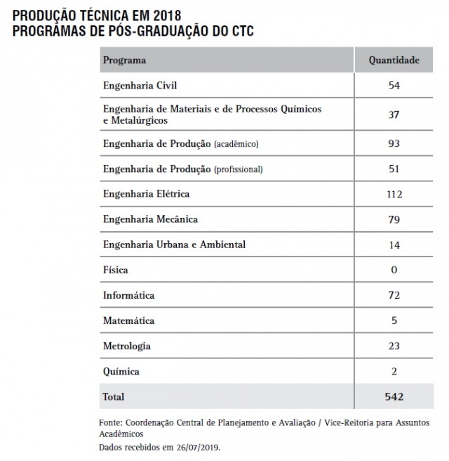 Produção Técnica - Programas de Pós-Graduação do CTC