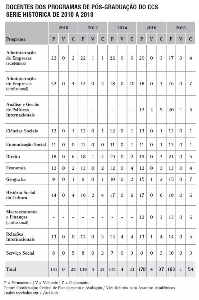 Docentes dos Programas de Pós-Graduação do CCS - Série Histórica
