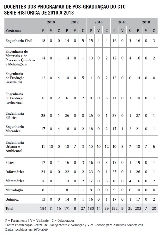 Docentes dos Programas de Pós-Graduação do CTC - Série Histórica