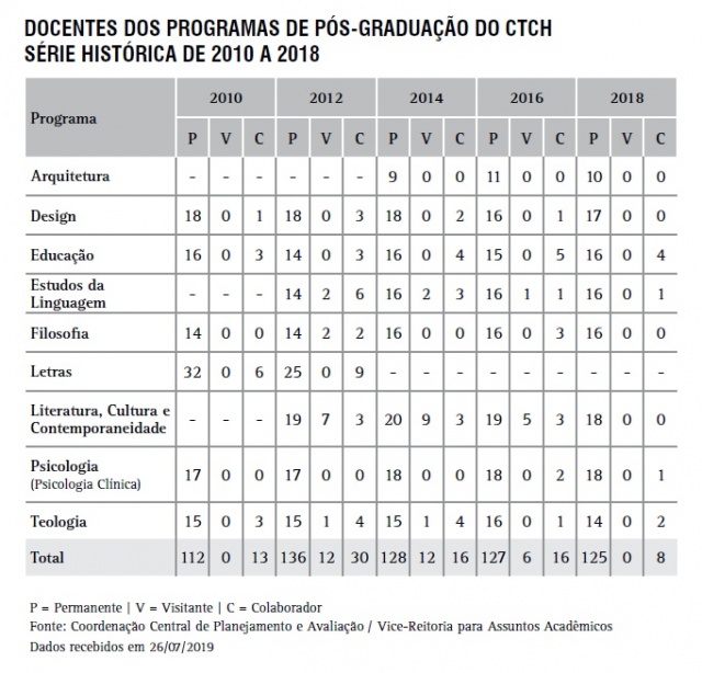 Docentes dos Programas de Pós-Graduação do CTCH - Série Histórica