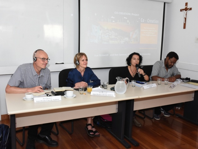 Palestra com as professoras Tereza Cavalcanti (TEO), Lina Boff (TEO) e Mônica Baptista Campos (TEO). Evento da Cátedra Carlo Maria Martini.