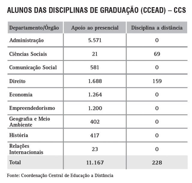 Alunos das disciplinas de Graduação - Educação a Distância (CCEAD) - CTC
