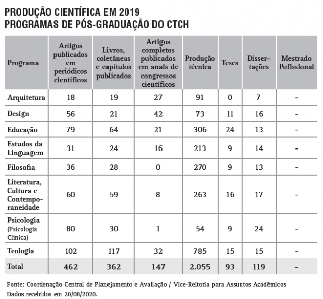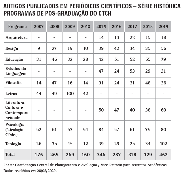 Artigos publicados em periódicos científicos - Programas de Pós-Graduação do CTCH - série histórica