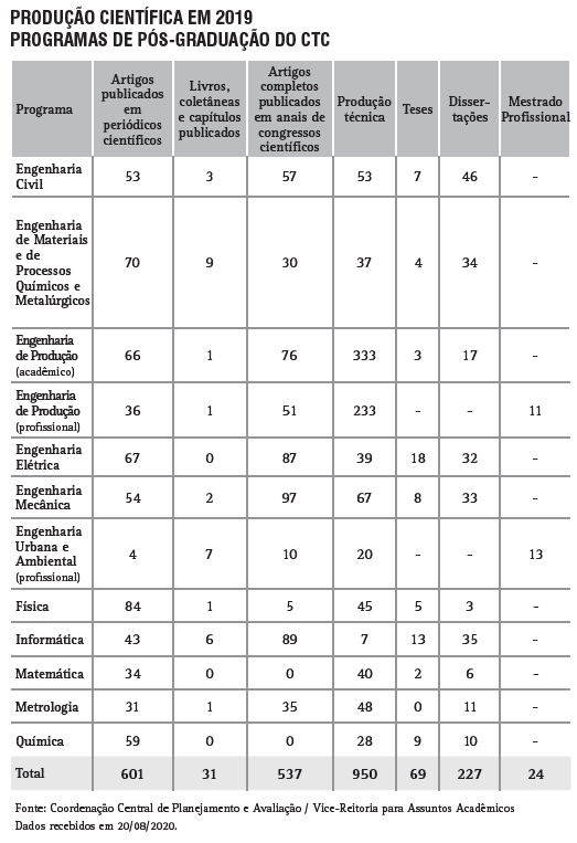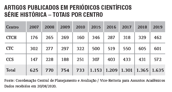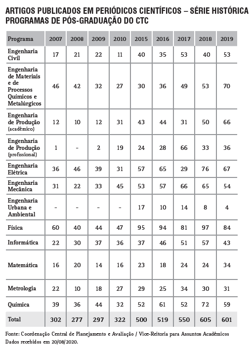 Artigos publicados em periódicos científicos - Programas de Pós-Graduação do CTC - série histórica