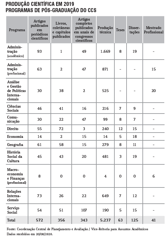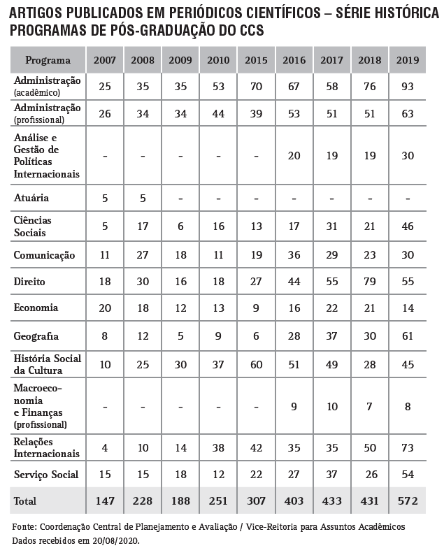 Artigos publicados em periódicos científicos - Programas de Pós-Graduação do CCS - série histórica