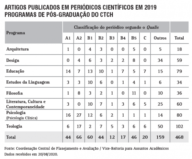 Artigos publicados em periódicos científicos - Programas de Pós-Graduação do CTCH - Classif. Qualis