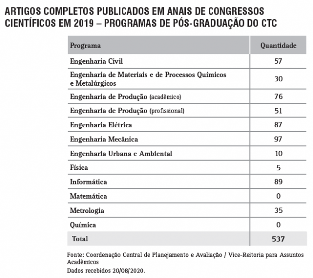 Artigos publicados em anais de congressos científicos pelos Programas de Pós-Graduação do CTC