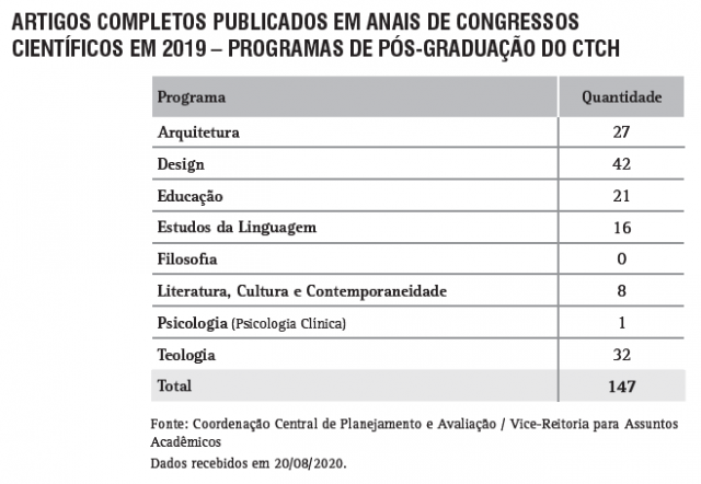 Artigos publicados em anais de congressos científicos pelos Programas de Pós-Graduação do CTCH
